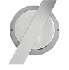 Chico presents silver framework manipulated to reflect lengths of ribbon which twist into a ring at the end. These rings encircle the round diffuser disk that houses the integral 3000K LEDs.