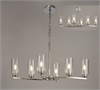A 6 light rectangular pendant with a polished nickel finish and clear glass shades. The height of this pendant is fully adjustable when it is hung from the matching chain. Alternatively, you could choose to forgo the chain and convert this into a fixed semi-flush fitting that hangs from the shorter rod.