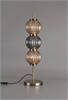 A 3-lamp, table light in an antique brass finish with smoked and amber ribbed glass globes.