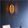 A 2 lamp, sculptural wall light which is hand finished in antique gold leaf. This large wall light is 450mm in height and 200mm in width but with a very slim projection of only 96mm. Ideal for when space is tight and perfect for use in hallways, dining rooms or living spaces. Would also add soft, ambient light and sculptural interest to commercial spaces such as bars, restaurants or hotels.