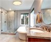 The Jarno ceiling lights have an IP44 rating and are designed specifically for the bathroom. A simple silver frame encircles an acrylic white diffuser that houses the 3000k integral LEDs. The silver ring has been designed to be shorter than the width of light so illumination spills above and below the frame.