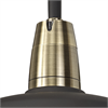 The lights in the Jean collection all hold an E27 lamp sheltered by a clear glass globe beneath a matt black opaque shade. An antique brass, hexagonal cage gives the light a vintage industrial twist and projects the light downwards.