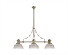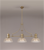 A 3 light pendant in an antique finish with substantial, textured glass shades. This light is fully adjustable as the central shade can be tilted by adjusting the bolts that hold it in place. Multiple height options are also possible due to the various lengths of drops rods included.