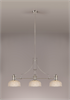 A 3 light pendant in a polished nickel finish with substantial, textured glass shades. This light is fully adjustable as the central shade can be tilted by adjusting the bolts that hold it in place. Multiple height options are also possible due to the various lengths of drops rods included.