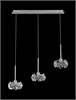 A 3-lamp, long drop, linear pendant in a polished chrome finish surrounded by crystal shades. Works wonderfully in a living room, dining room or bedroom. Use in commercial settings such as hotels, bars or restaurants to add warm and ambient illumination. Hang the pendants in a cascading waterfall design or stagger them for an interesting effect. This is a truly bespoke light fitting which can be made to fit any space.