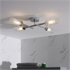 A 4 light, semi-flush ceiling light in a chrome plated finish with ribbed, clear glass shades. Sitting within the shades are frosted diffusers to hide the bulbs from view and provide a soft, dispersed glow. IP44 rated so safe to use in bathrooms.