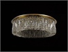 A round flush chandelier measuring 85cm in a gold finish with crystals measuring a large 850mm in diameter.
